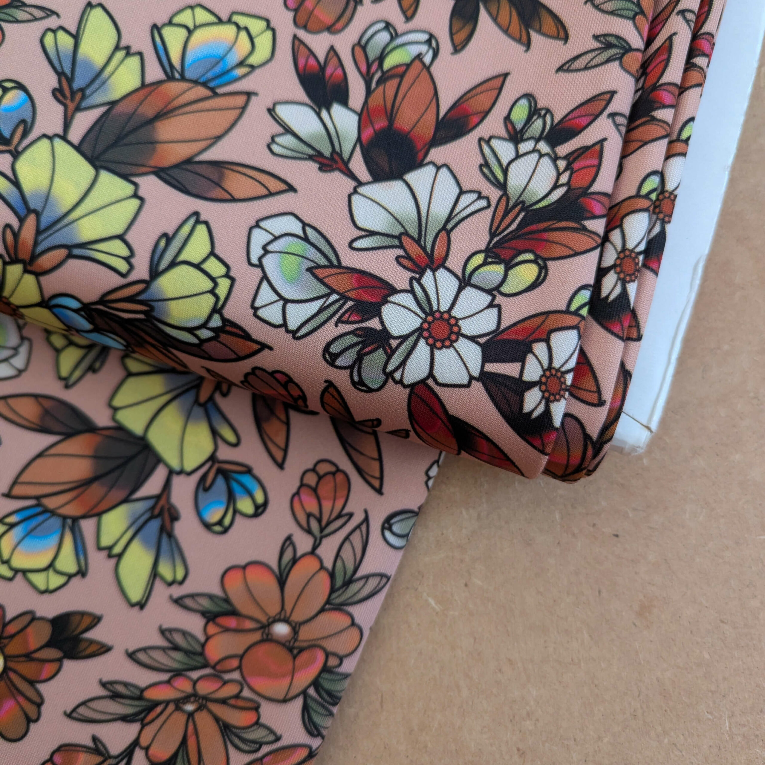 Le SCUBA est une maille « double knit » (cela signifie que 2 tissus sont tricotés simultanément ensemble) en  polyester et élasthanne. C’est une bonne matière pour commencer la couture du stretch sans stress.